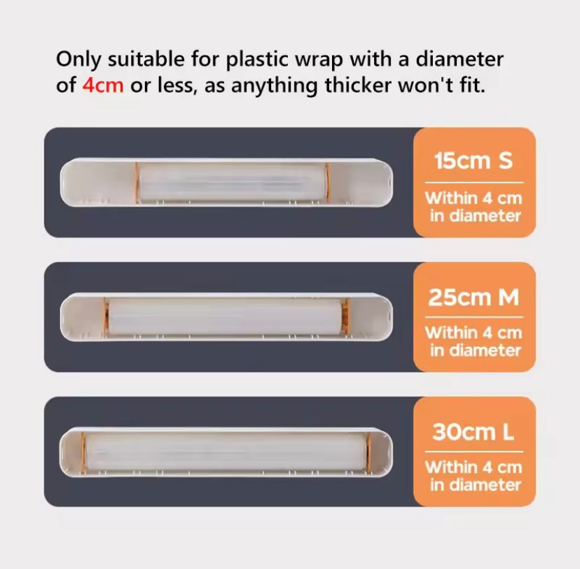 Keep your kitchen organized and efficient with this magnetic Food Film Dispenser designed for plastic wrap, aluminum foil, and baking paper. Made from durable, high-quality material, it offers excellent impact resistance and long-lasting use. The adjustable design fits rolls from 15 to 30 cm, and the smooth slide cutter ensures clean, waste-free cuts every time. Its strong magnetic backing lets you attach it to your fridge, oven, or microwave for easy access, while the waterproof and dustproof build keeps your wrap clean and ready to use. Perfect for quick food prep, airtight storage, and everyday kitchen convenience.